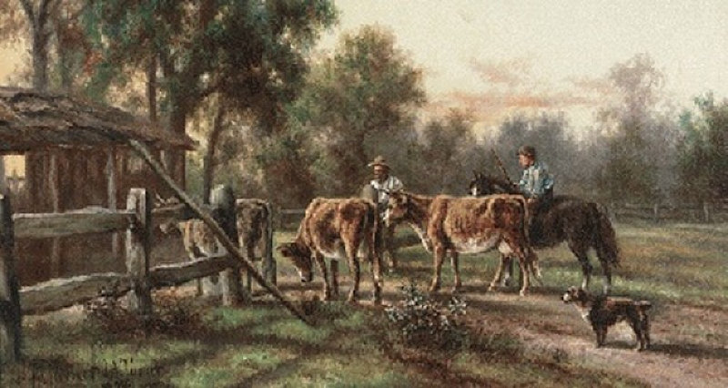 1904 Milking Time sgn dt ocldb 20.5x38.0cm