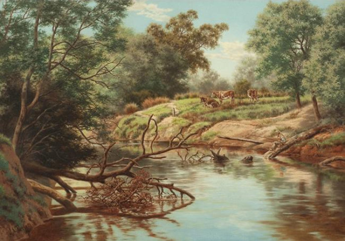 1906 Sunday Fishing sgn dt ooc 70x105cm