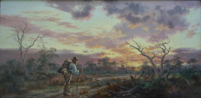 1896 A Traveller at Sunset ooc 34.5 x 69.5cm